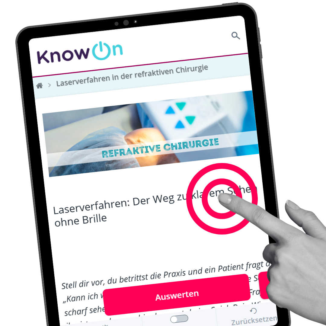 Unser eLearning vermittelt dir fundiertes Wissen über die modernen Verfahren zur Korrektur von Fehlsichtigkeiten. Lerne die Funktionsweise von Laserverfahren und Linsenimplantaten kennen und verbessere deine Beratungskompetenz sowie deine Fähigkeit, Patienten optimal auf ihre Behandlung vorzubereiten.