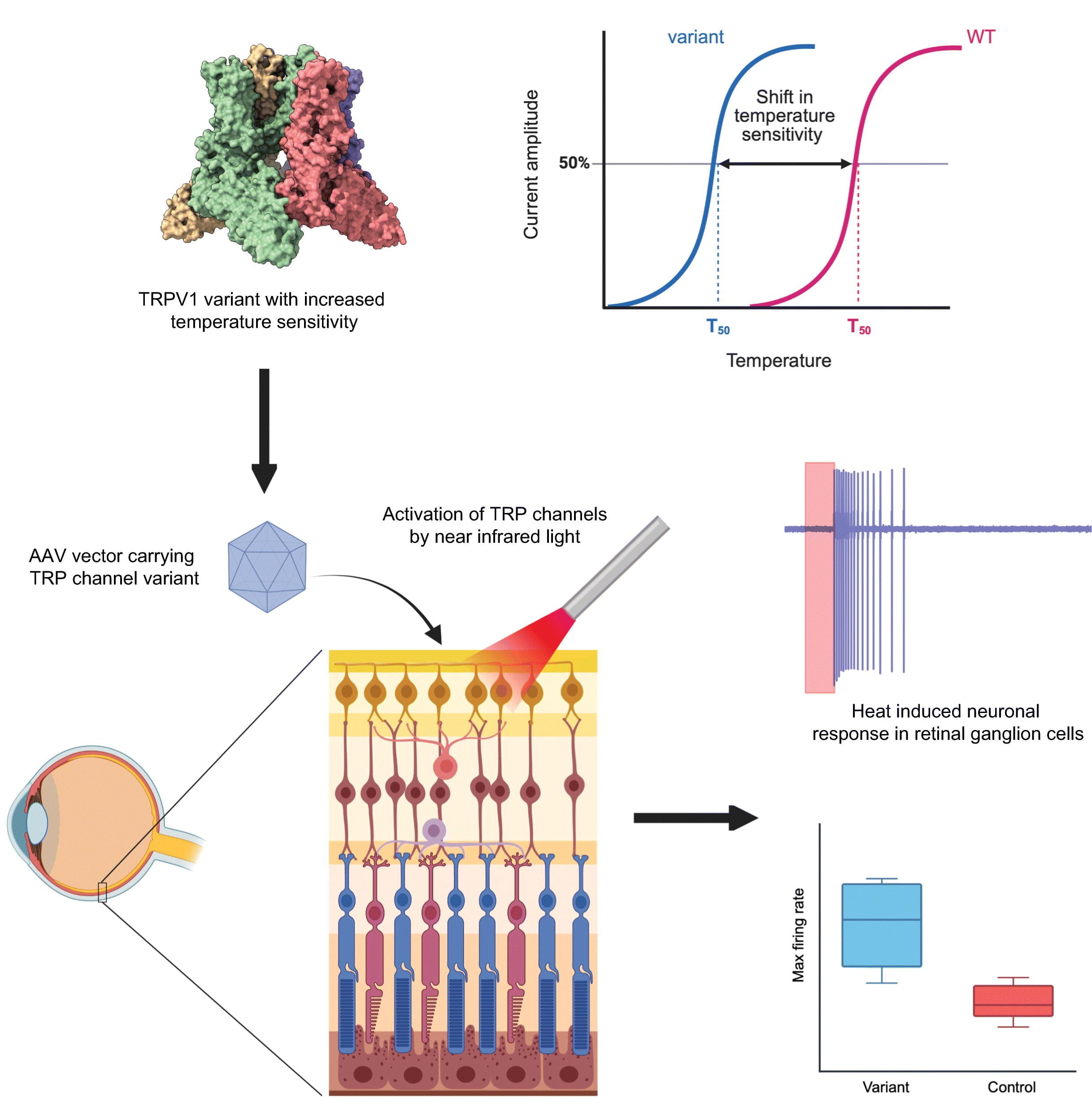 Restoring vision in retinal degeneration is a major biomedical challenge. In this study, IOB scientists engineered an ultrasensitive variant of the human TRPV1 channel, delivered by an AAV vector, that responds to near-infrared microheating.