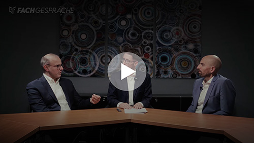 Dr. Andreas Cordes (niedergelassener Augenarzt) und Dr. Karl Mercieca (Oberarzt am Universitätsklinikum Bonn) diskutieren gemeinsam mit Moderator Pascal Schipper (Universitätsklinikum Bonn) moderne Therapieansätze beim Glaukom.