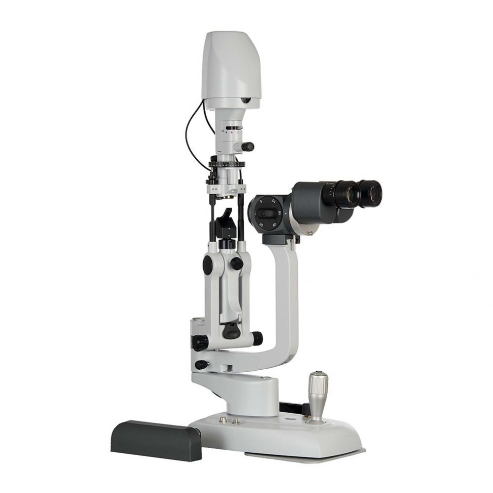 Die Spaltlampe SL-99K in klassischer H-Typ Ausführung ist das Nachfolgermodell der erfolgreichen „bon SL-75“. Sie bietet eine helle LED-Beleuchtung und 5 Vergrößerungen von 6x bis 40x. Die Ausführung mit Beleuchtung von oben erlaubt eine horizontale Neigung des Spalts um bis zu 20° (Spaltentkopplung). Die Helligkeitsregelung erfolgt direkt an der Gerätebasis. Die Spaltlampe ist mit einem Joystickauslöser und einer R/L Erkennung in der Gerätebasis vorbereitet zur Aufnahme eines Kameramoduls.